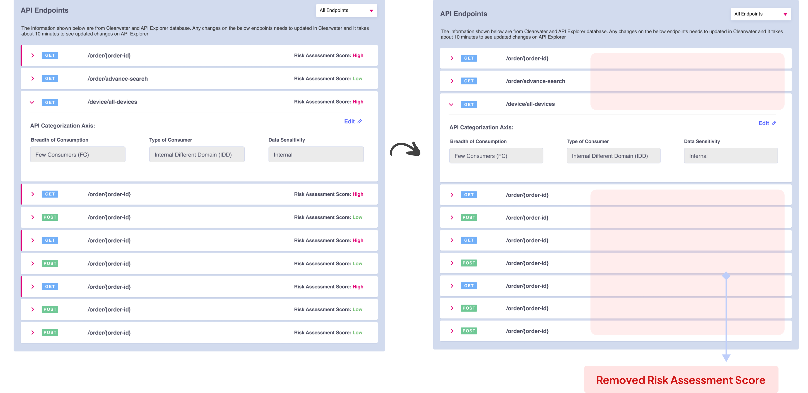 The below exploration allowed developers to review customer information on each endpoint and the risk assessment score associated with the same. Developers were allowed to update customer information if there were any discrepancies.